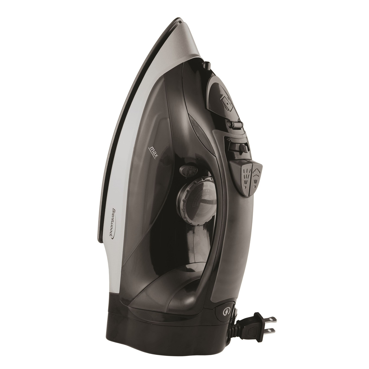 Use the powerful 1200 watt Brentwood Non-Stick Steam Iron to quickly and efficiently eliminate wrinkles giving your clothes a crisp, polished look. Iron all kinds of fabrics using the fabric selection guide, spray and steam settings. Switch from variable steam to vertical steam to remove wrinkles from hanging curtains, drapes, linens and more. Non-stick coating allows iron to glide across fabrics. Easily refill the steam iron with water and conveniently see how much is left with the see through water compartment. Power indicator light illuminates when the steam iron is turned on. The 7.5 foot cord quickly retracts into the base with the push of a button. Our jet black steam iron accents any home’s décor.